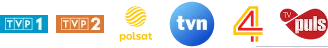 TVP1, TVP2, Polsat, TVN, TV4, TV Puls i inne